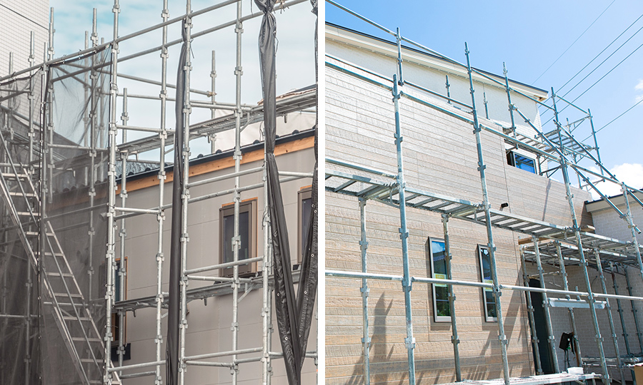 当方では、戸建て住宅での工事の際に使用する足場を設置する足場工事を行っております。